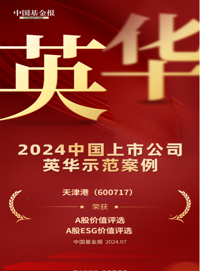 近日,中國基金報(bào)“2024中國上市公司英華示范案例”評(píng)選結(jié)果公布,天津港股份公司憑借穩(wěn)健的經(jīng)營業(yè)績(jī)、長(zhǎng)期的股東回報(bào)和出色的ESG表現(xiàn)一舉摘得“A股價(jià)值獎(jiǎng)”“A股ESG價(jià)值獎(jiǎng)”兩項(xiàng)大獎(jiǎng)。